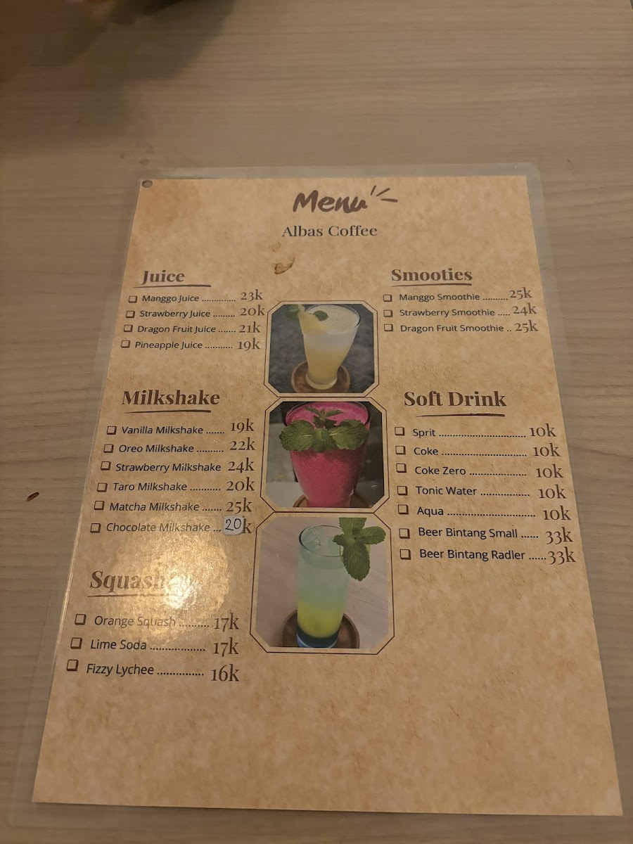 Welcome to Albas Coffee, a charming café nestled in the heart of Gianyar, Bali. Known as a hidden gem, Albas Coffee combines quality brews with an inviting atmosphere. Enthusiastic patrons rave about the coffee, highlighting the Kopi Susu Gula Aren as a must-try. The cozy interior, adorned with comfortable seating and soft lighting, is ideal for both work and leisurely conversations.